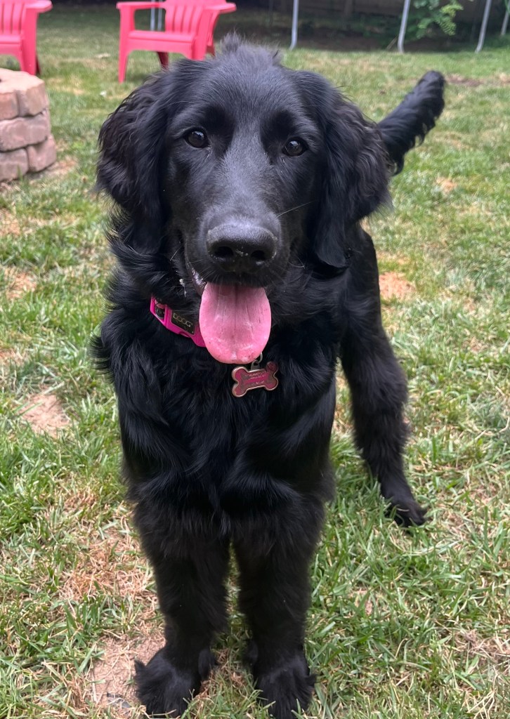 Our Goldendoodle girl Valentine is the sweetest there is. She is a very healthy, 63 pound, black flatcoated beauty. She has a very mellow temperament and is very friendly with everyone. She loves to play in the yard and to go to ball games to get lots of pets from friends.