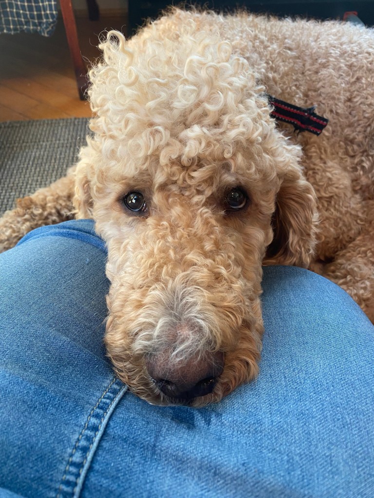 Our sire, Max, is an AKC Standard Poodle, owned by Graceful Paws Poodles. Max is a healthy loved pet who also lives in his “furever” home. He is a handsome apricot colored guy, weighing 62 pounds. Max enjoys being with his owner, he is her bestie. Her grandchildren are a highlight to him, he loves kids.